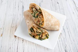 Hover For Ingredients Eggs, golden potatoes, Italian seasonings, spinach, cheddar cheese, salsa roja (vine ripened tomatoes, tomato juice, onion, serrano peppers, cilantro, garlic, salt, apple cider vinegar, sunflower oil, ground chipotle, calcium chloride), light mayonnaise (water, soybean oil, modified cornstarch, sugar, corn, maltodextrin, liquid whole egg, vinegar, salt, liquid egg yolk, mustard, lactic acid, potassium sorbet, phosphoric acid, dried onion, dried garlic, calcium disodium EDTA, spice), whole wheat tortilla (whole wheat flour, water, canola & modified palm oil, salt, sugar, baking powder, vegetable mono-and-di-glycerides, calcium propionate, fumaric acid, guar gum, potassium sorbate, enriched wheat flour, propylene glycol, modified cellulose)4.00 out of 5$13.99 Read more Login or Register to BuyFree range scrambled eggs tossed with our salsa roja aioli, fresh organic spinach, Italian roasted golden potatoes and shredded cheddar cheese wrapped up in a tasty 12 inch whole wheat tortilla