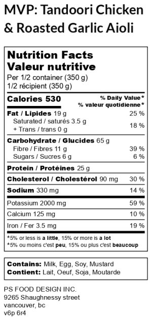 Hover For Ingredients Chicken breast, romaine lettuce, walnuts, hemp seeds, nutritional yeast, olive oil, salt, hard boiled egg, lemon, house made caesar dressing (red wine vinegar, gluten free Worcestershire sauce, garlic, dijon mustard, soft tofu, black pepper), herbs & spices0 out of 5$19.25 Read more Login or Register to BuyGrilled Montreal seasoned chicken breast over crisp romaine with our walnut & hemp “parmesan,” hard boiled egg, lemon and house made vegan caesar dressing