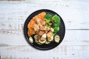 Hover For Ingredients chicken thigh, onion powder, cumin, turmeric, cayenne pepper, cinnamon, coriander, cardamom, olive oil, salt, romaine lettuce, cucumber, Roma tomato, feta cheese, red bell pepper, kalamata olives, red onion, olive oil, balsamic, herbs & spices0 out of 5$19.25 Read more Login or Register to BuyTender sliced chicken thigh baked with Greek spices and served over crisp lettuce greens with cucumber wedges, Roma tomato, red bell pepper, feta, red onion & kalamata olives